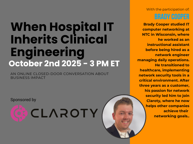 When Hospital IT Inherits Clinical Engineering – Sponsored by Claroty on October 2nd, 2025 Learn More »
